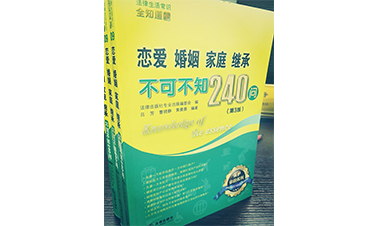本著為讀者服務和以解決問題為中心的理念,法律出版社推出了《法律生活常識全知道》系列叢書,曹曉靜律師參與編寫了《戀愛、婚姻、家庭、繼承不可不知240問》,本書收錄了婚姻家庭生活中常見、多發問題,問題解答配以典型案例和生活實例,用淺顯易懂的語言說明法律適用的關鍵點,分析深入淺出、生動直觀,易于理解,為讀者維護合法權益、辦理相關法律事務提供切實的指導和幫助。
